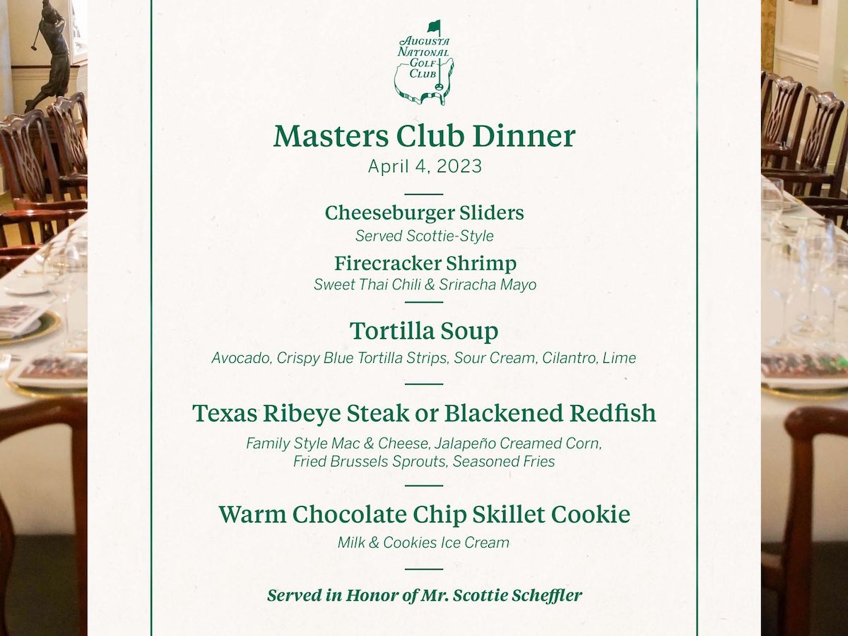 - Masters Tournament reveals Scottie Scheffler's menu for champions ...